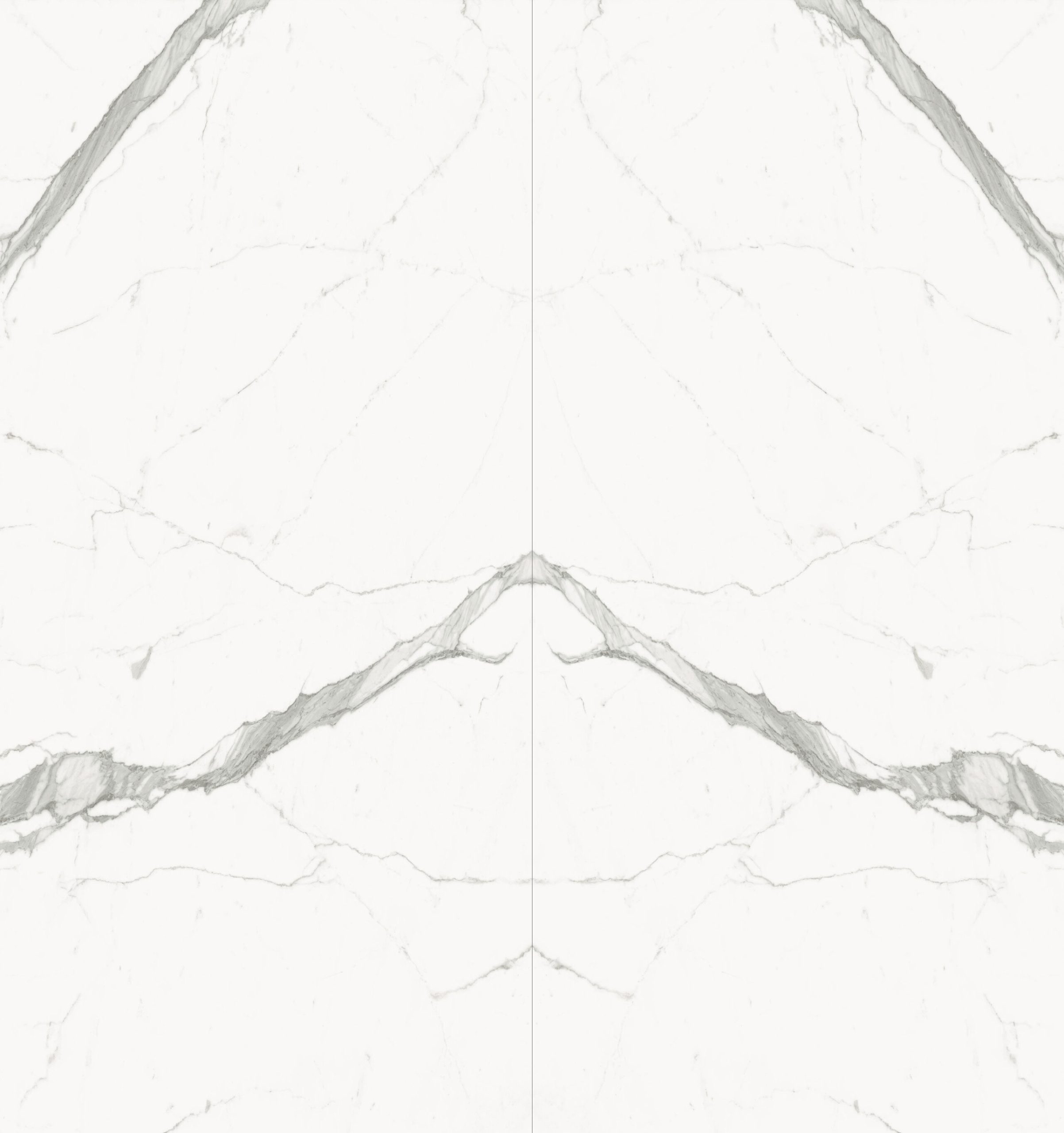 Welcome to the epitome of design excellence – introducing our latest collection, Bookmatch Bliss. Embrace the extraordinary with these large-format porcelain slabs, measuring up to an impressive 162 x 320 cm. Crafted to redefine spaces, Bookmatch Bliss offers a symphony of possibilities for feature walls, shower rooms, and statement splashbacks. Fully supported by our cutting and slab trimming services to simplify the installation process and ensure perfect vein matching. Bold in presence, these slabs are more than just surfaces; they are statements of style. Elevate the ordinary to the extraordinary, by using bookmatched slabs for luxury kitchen islands. Bookmatch Bliss stands as a testament to our commitment to pushing the boundaries of design innovation and offers the most diverse selection of bookmatch surfaces. See here for more information about the applications for bookmatch pairs. Note that 12 mm thickness bookmatch slabs are not rectified. This means that it will always be necessary to trim all four sides of both slabs to ensure that the graphic matches exactly with its mirrored pair. Trimming 12 mm slabs onsite is extremely difficult, we therefore strongly recommend that you include our fixed cost bookmatch trimming service when specifying 12 mm bookmatched slabs. See here for more information.