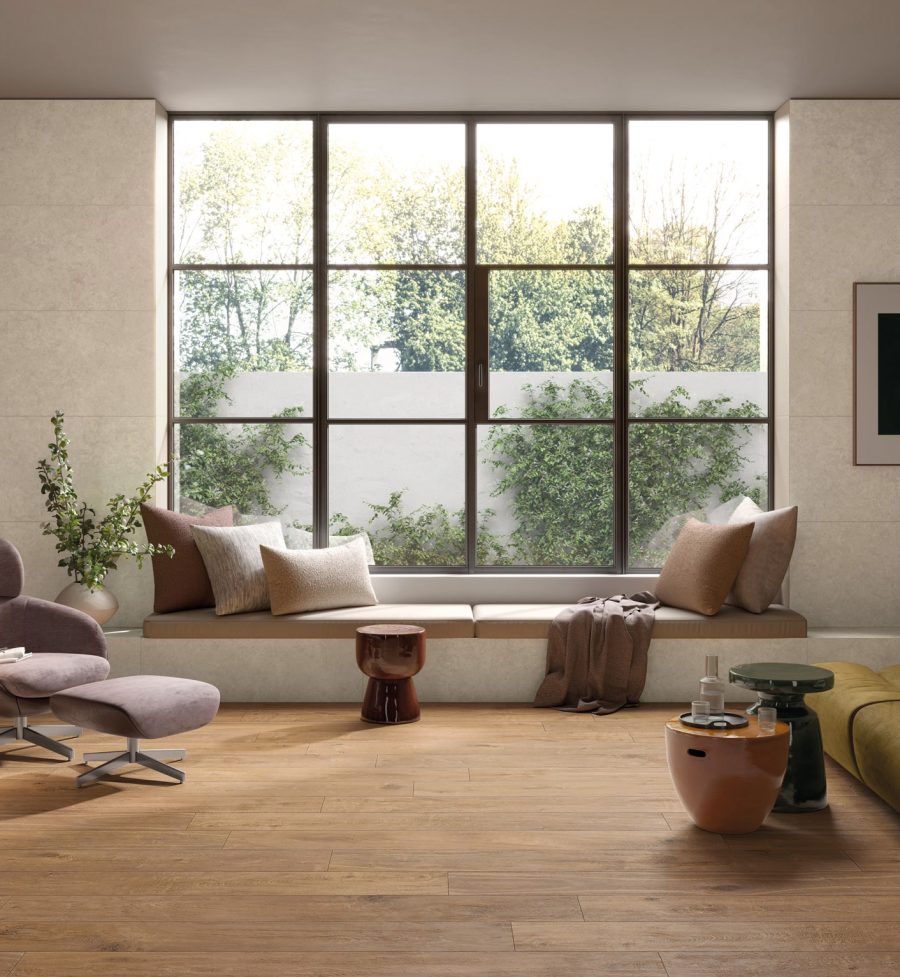 Cava is a refined stone effect collection with minimalist aesthetics and rich material depth. Five balanced colourways feature delicate tonal nuances and authentic mineral surface effects, suitable for contemporary interiors and exteriors. Formats range from large slabs to standard tiles, providing flexibility across residential and commercial projects. Three finishes address different functional needs: Natural for interior spaces, Structured R11 for wet areas and high-traffic zones, and 20mm Grip R11 (up to 1200 x 1200mm) for demanding exterior applications including pool decks and plazas. Arrow and Line decorative variants come as 1200 x 2780mm panels, adding architectural relief to vertical surfaces and feature walls.