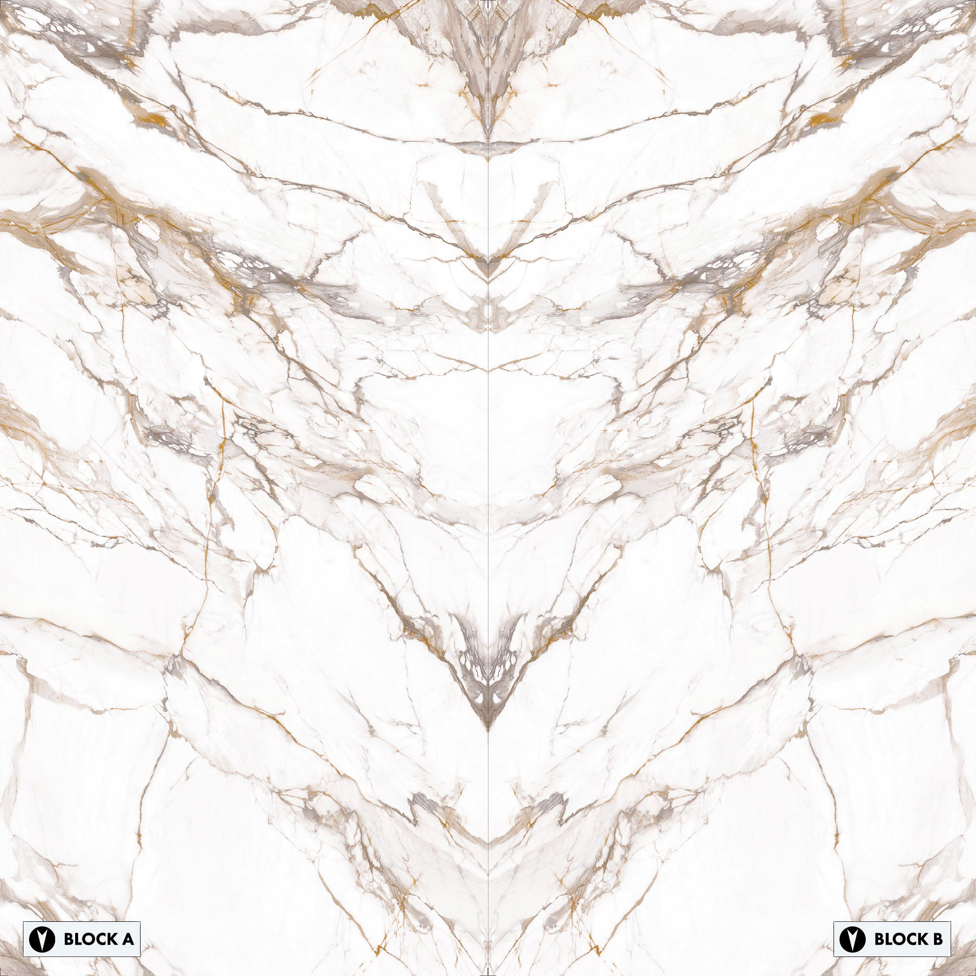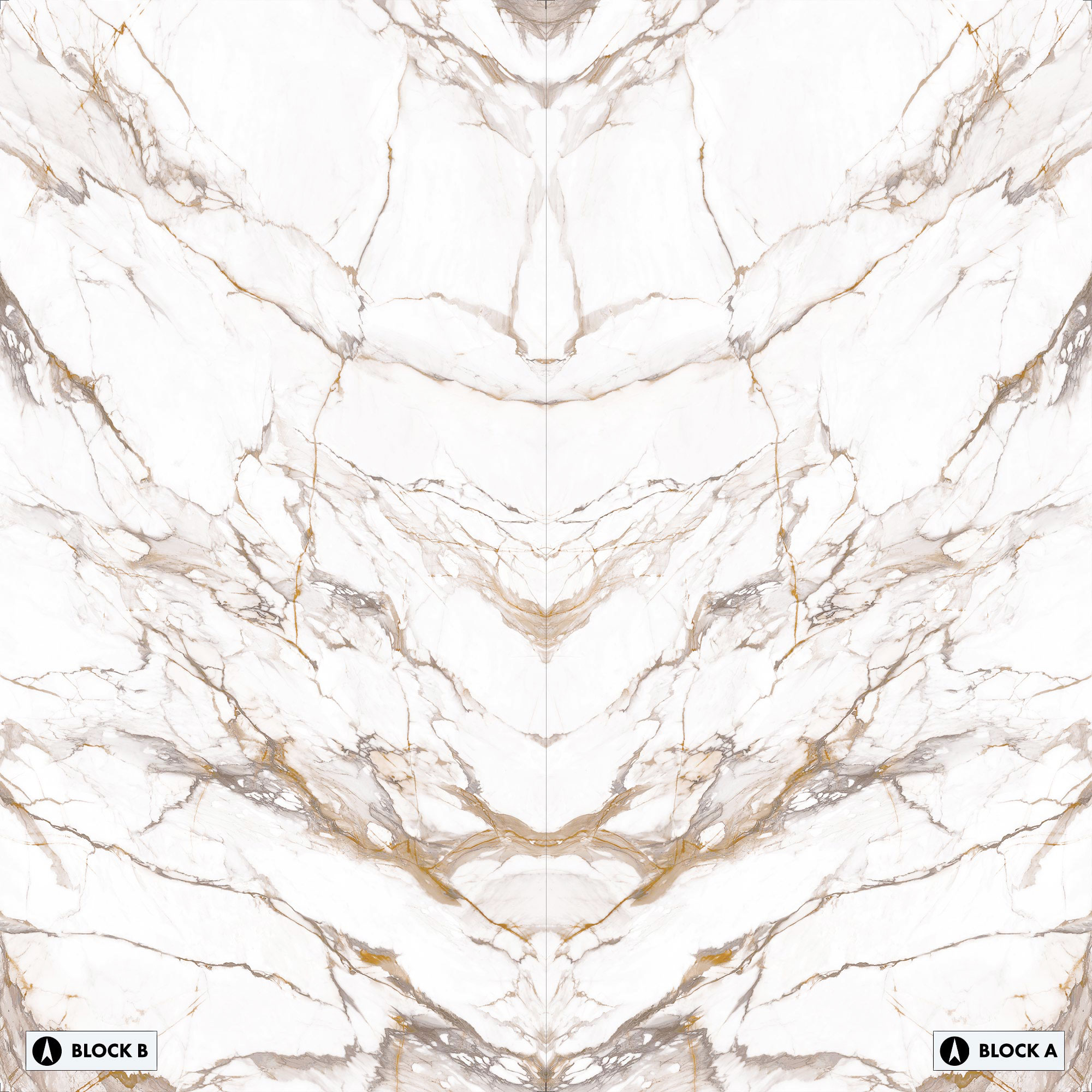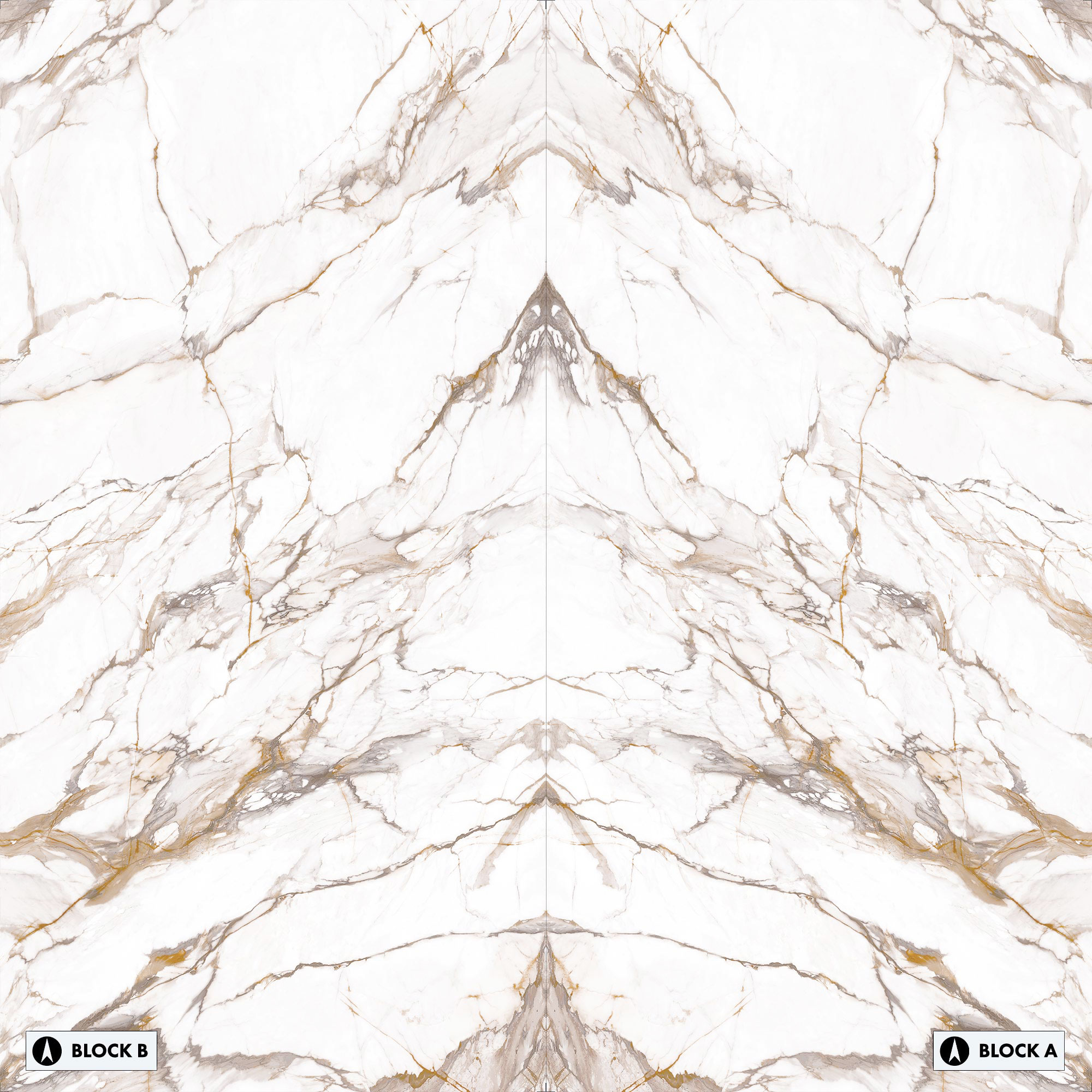 Bookmatched slabs are typically supplied in "Block A" and "Block B" matching surfaces, the pattern of which mirror each other. Below you will find layout options for Calacatta Luxury Bookmatched. The layouts have been prepared to help you understand which Block, A or B is used to create each combination and which direction the block is facing, north or south.