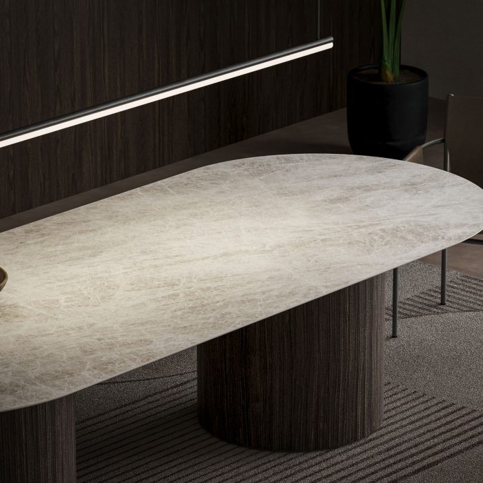 Via Taj Mahal captures the majestic beauty of renowned Taj Mahal quartzite through sophisticated porcelain engineering. Four colour variations showcase warm amber tones interwoven with precious metallic and mineral veining, creating surfaces that interact dynamically with natural light. The collection's soft, undulating texture and refined graphic interplay deliver authentic material representation whilst offering the practical advantages of advanced porcelain technology. Available in Natural, Polished and Honed finishes, plus a Structured finish with R11 slip resistance, designers can select the appropriate surface for their specific project requirements. This collection addresses the practical requirements of contemporary residential and commercial projects where natural quartzite would prove impractical. Porcelain's inherent durability, stain resistance, and minimal maintenance requirements make Via Taj Mahal suitable for high-traffic areas, and demanding installations including kitchen worktops, bathroom vanities, and feature walls. The Polished finish delivers luminous sophistication for statement applications, whilst the Honed finish with R9 slip resistance offers subtle elegance for floor installations. Via Taj Mahal combines the prestigious aesthetics of rare natural stone with the reliability and performance of latest-generation porcelain, enabling designers to specify luxury material characteristics without compromising on longevity or functionality.