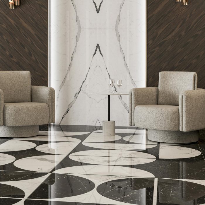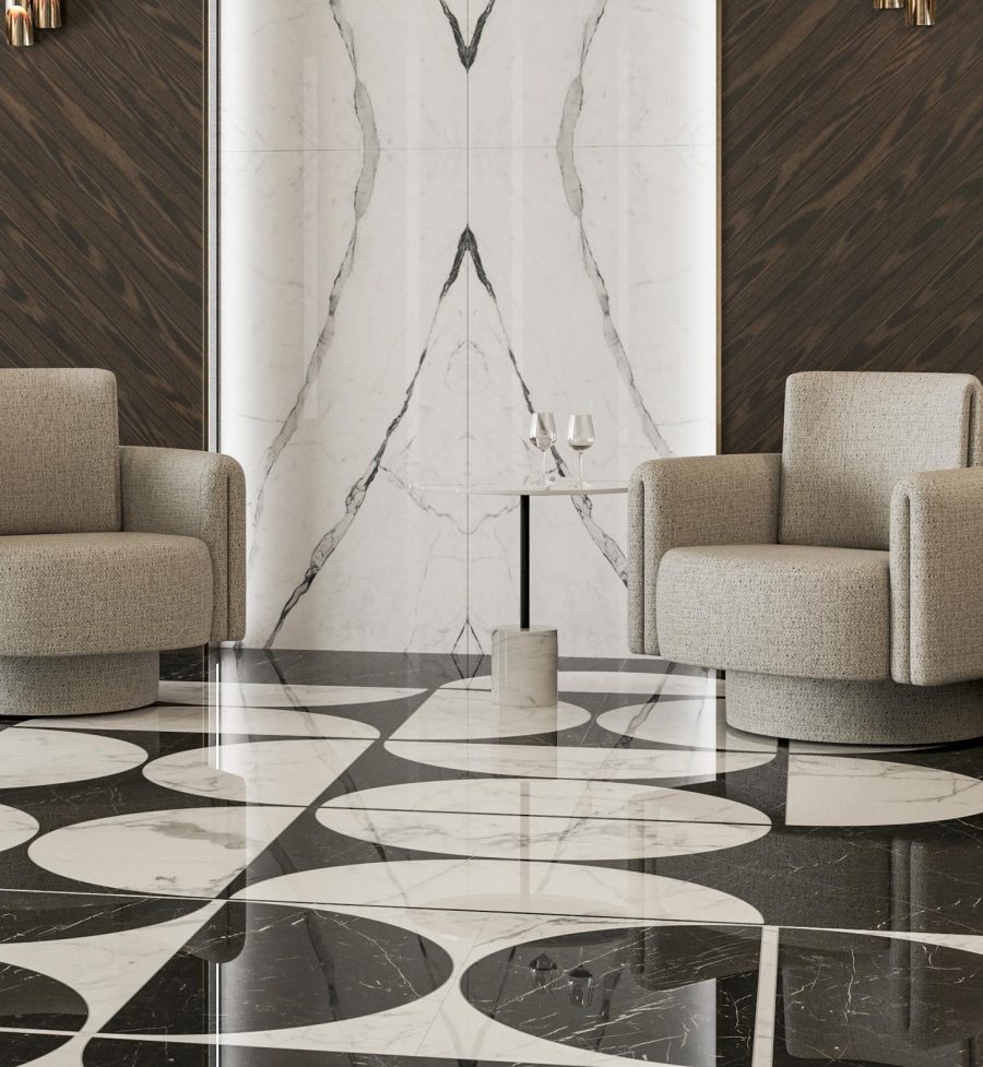 Welcome to the epitome of design excellence – introducing our latest collection, Bookmatch Bliss. Embrace the extraordinary with these large-format porcelain slabs, measuring up to an impressive 162 x 320 cm. Crafted to redefine spaces, Bookmatch Bliss offers a symphony of possibilities for feature walls, shower rooms, and statement splashbacks. Fully supported by our cutting and slab trimming services to simplify the installation process and ensure perfect vein matching. Bold in presence, these slabs are more than just surfaces; they are statements of style. Elevate the ordinary to the extraordinary, by using bookmatched slabs for luxury kitchen islands. Bookmatch Bliss stands as a testament to our commitment to pushing the boundaries of design innovation and offers the most diverse selection of bookmatch surfaces. See here for more information about the applications for bookmatch pairs. Note that 12 mm thickness bookmatch slabs are not rectified. This means that it will always be necessary to trim all four sides of both slabs to ensure that the graphic matches exactly with its mirrored pair. Trimming 12 mm slabs onsite is extremely difficult, we therefore strongly recommend that you include our fixed cost bookmatch trimming service when specifying 12 mm bookmatched slabs. See here for more information.