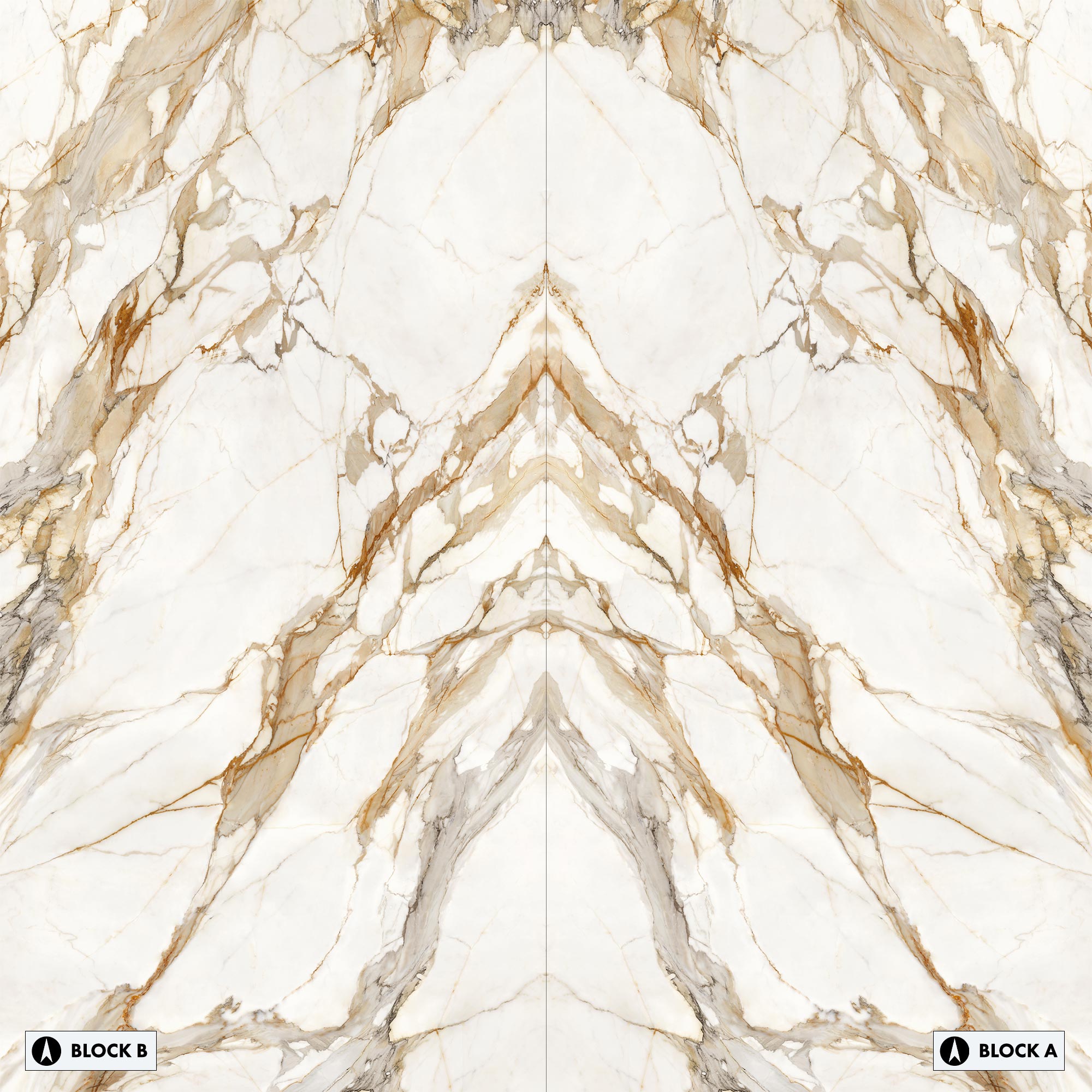 Alba | Aurora | Black Calacatta | Blue Ande | Bordiglio Manhattan | Bright | Calacatta Canova | Calacatta Picasso | Calacatta Viola | Caldia | Camouflage | Corchia Arabescato | Cyan | Dolce | Eclipse | Golden Ambra | Irish Green | Ivory Gioiello | Jet | Klimt | Labradorite | Laguna Blanca | Lumix | Macchia Vecchia | Michelangelo Statuario | Moon Grey | Panda | Paradise White | Puro | Quarzo | Renoir Calacatta | Statuario Extra | Taj Mahal Polished 1620 x 3200 x 12 Bookmatch Block B