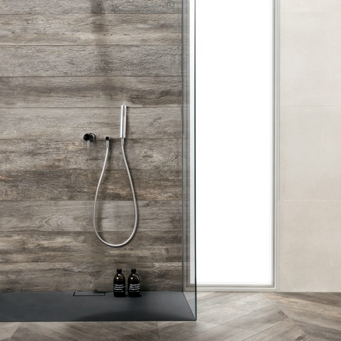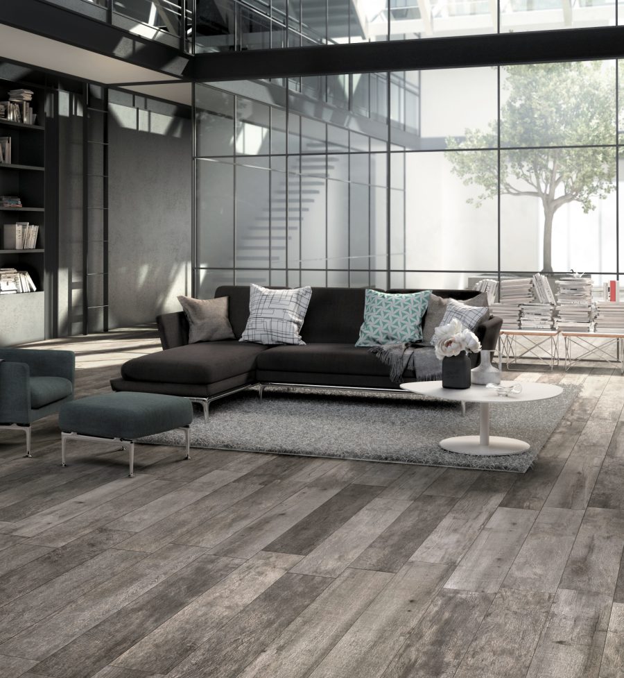 Corteccia displays the intricate graining, texture and knotting of genuinely aged timber and is suitable for internal and external projects. A solid wood-effect porcelain tile, Corteccia is available in three large floorboards in Natural, Grip and Structured finishes and provides excellent aesthetics combined with the superior technical performance of porcelain. The 197 x 1200 mm and 300 x 1200 mm floorboard has a 20 mm thickness, and with its Grip finish is ideal for outdoor living areas and low-maintenance landscaping. These large floorboards work well within open living spaces, while a Chevron option completes the extensive laying possibilities. With five rustic colours, Corteccia is ideal for flooring and wall panelling and projects where underfloor heating or a low maintenance, sustainable hardwood is required.