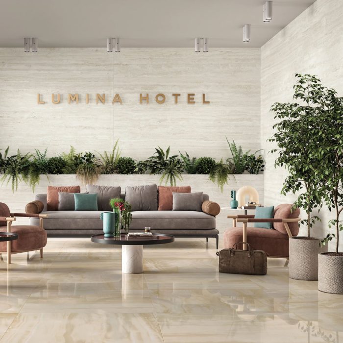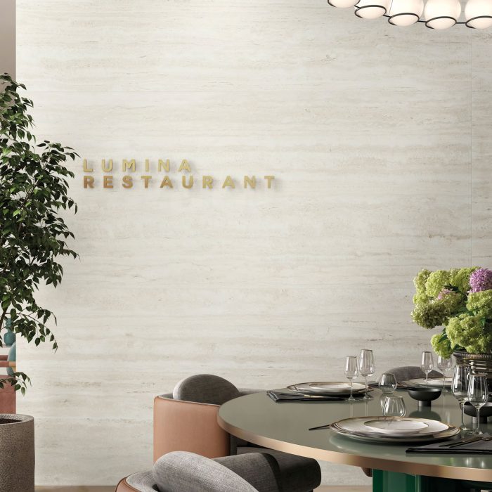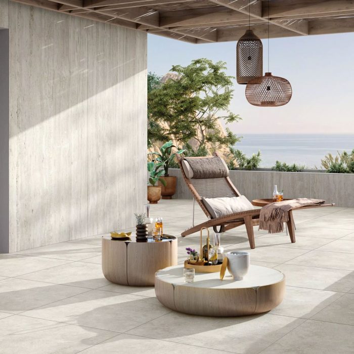Meet Travertine Sense, a collection of porcelain surfaces that boast a natural, earthy aesthetic that aligns perfectly with the growing demand for biophilic design and organic materials in interiors. Soothing, neutral tones and authentic textures bring tranquillity and warmth to modern spaces. Drawing inspiration from the subtle shades of travertine stone, this range offers seven delicate hues, each telling its own story of timeless beauty. The stone’s distinct veining and natural patterns add character and elegance to any space, making it a luxurious choice for floors, walls, and countertops. Choose from Cross or Vein cut, or the decorative Wave option to add further interest through texture and shade. Versatility is at its core, as the collection features different formats, from impressive large slabs to functional Grip finishes. This versatility allows it to be used in various applications, from statement walls to minimalist flooring. With natural variations and three decorative options, Travertine Sense can be used across multiple surfaces for unity, where everything in the design works together to create a cohesive whole. Whether indoors or outdoors, these surfaces seamlessly integrate into a range of spaces, bringing a sense of quiet elegance and practicality.