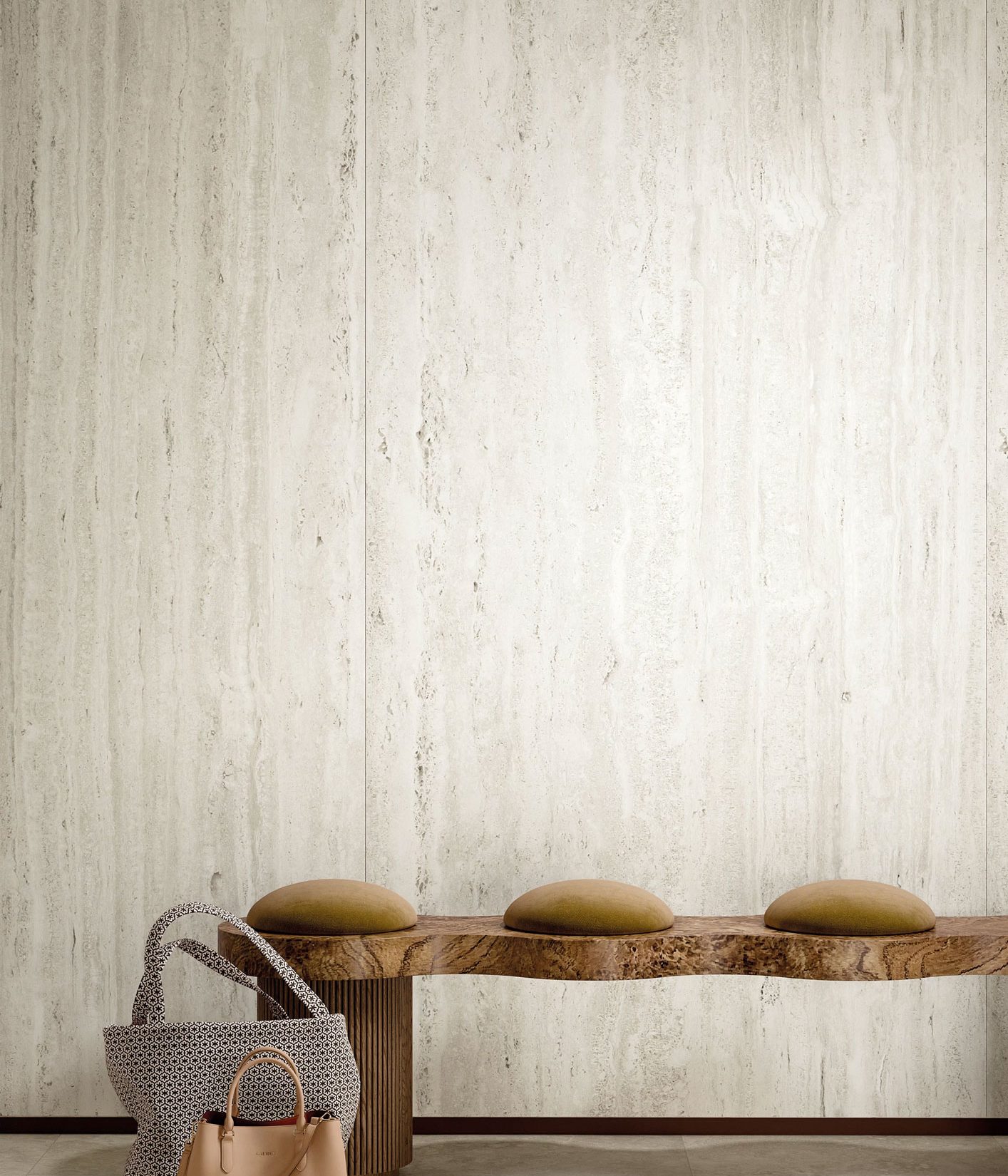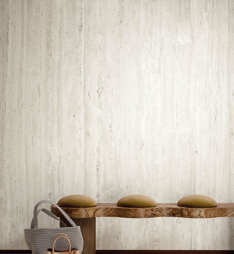 Meet Travertine Sense, a collection of porcelain surfaces that boast a natural, earthy aesthetic that aligns perfectly with the growing demand for biophilic design and organic materials in interiors. Soothing, neutral tones and authentic textures bring tranquillity and warmth to modern spaces. Drawing inspiration from the subtle shades of travertine stone, this range offers seven delicate hues, each telling its own story of timeless beauty. The stone’s distinct veining and natural patterns add character and elegance to any space, making it a luxurious choice for floors, walls, and countertops. Choose from Cross or Vein cut, or the decorative Wave option to add further interest through texture and shade. Versatility is at its core, as the collection features different formats, from impressive large slabs to functional Grip finishes. This versatility allows it to be used in various applications, from statement walls to minimalist flooring. With natural variations and three decorative options, Travertine Sense can be used across multiple surfaces for unity, where everything in the design works together to create a cohesive whole. Whether indoors or outdoors, these surfaces seamlessly integrate into a range of spaces, bringing a sense of quiet elegance and practicality.
